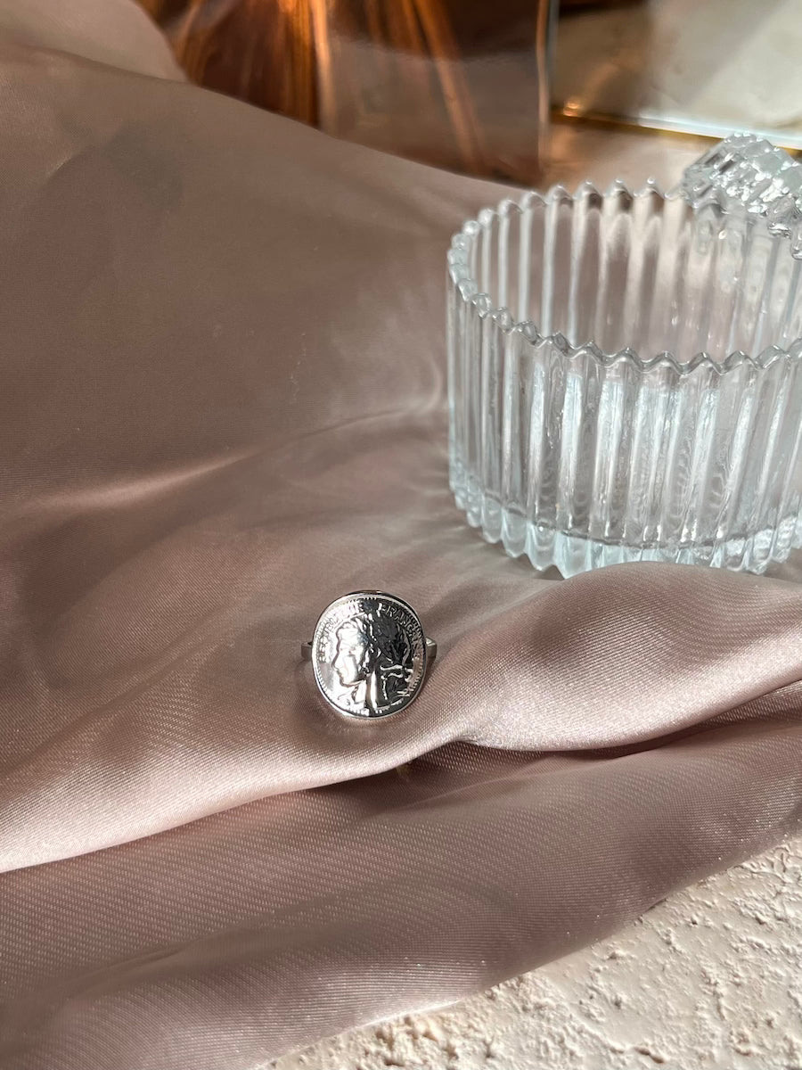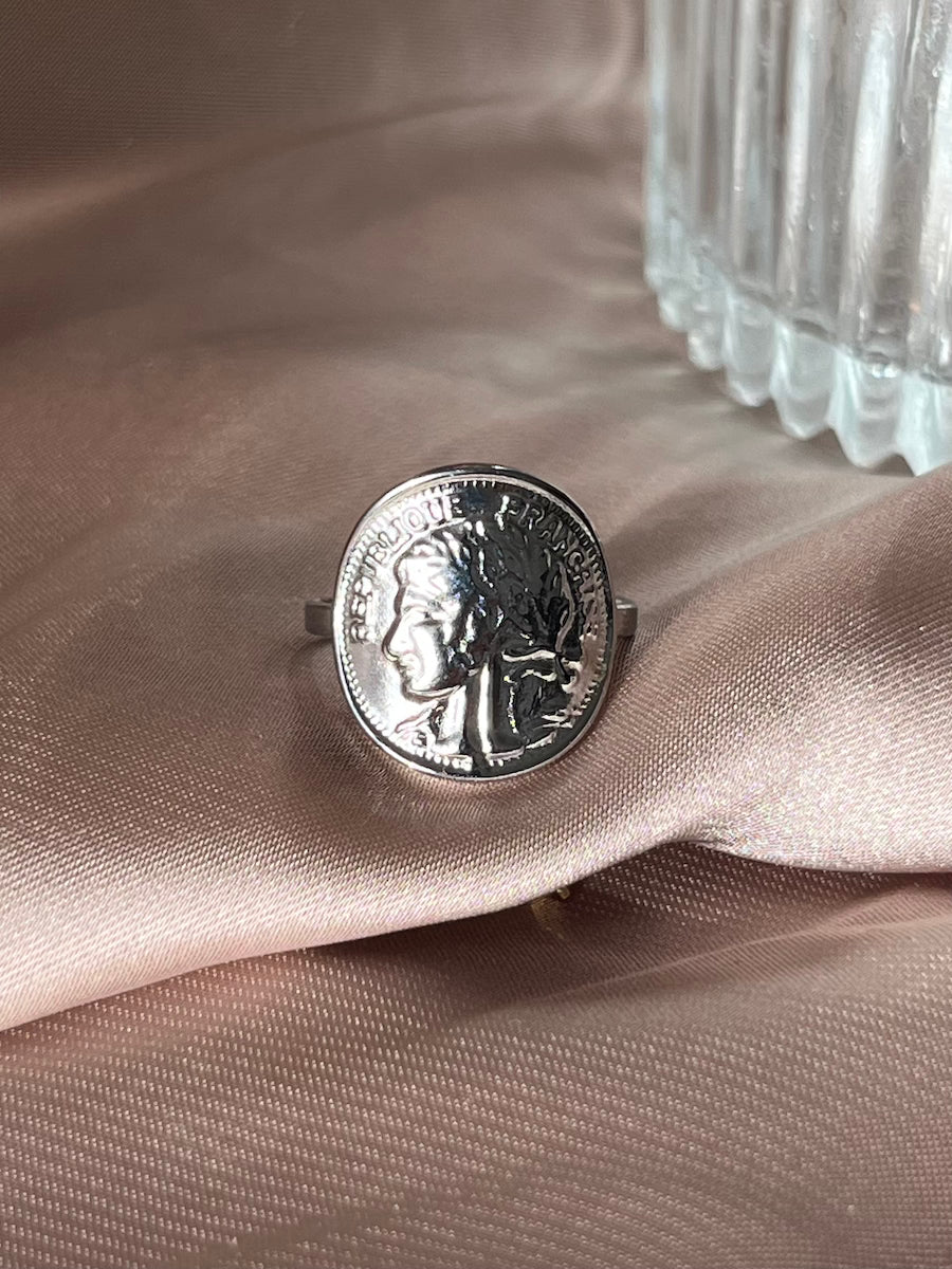 - Bague argenté style pièce de monnaie avec inscription "République Française"