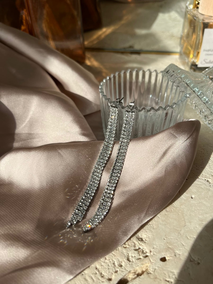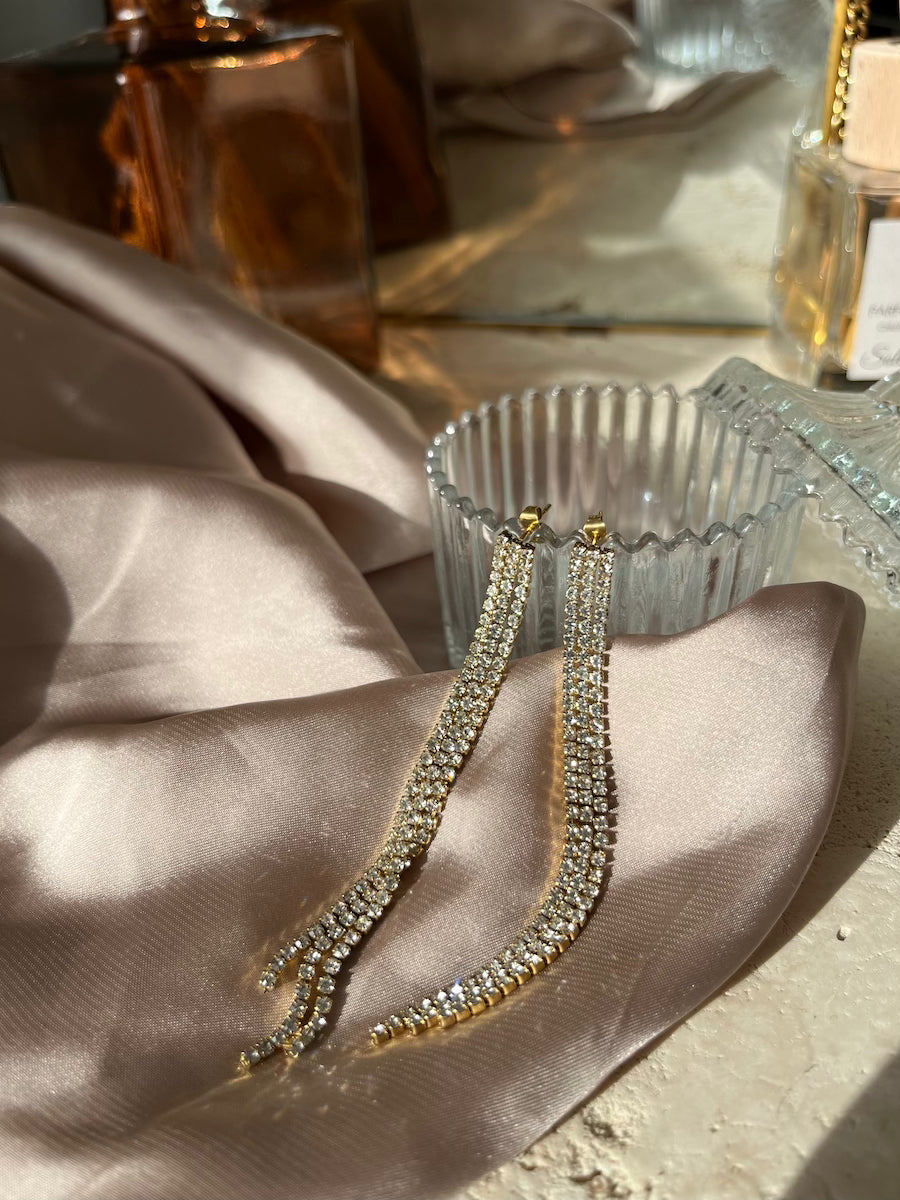 - Boucles d'oreilles pendantes, 3 rangs en strass