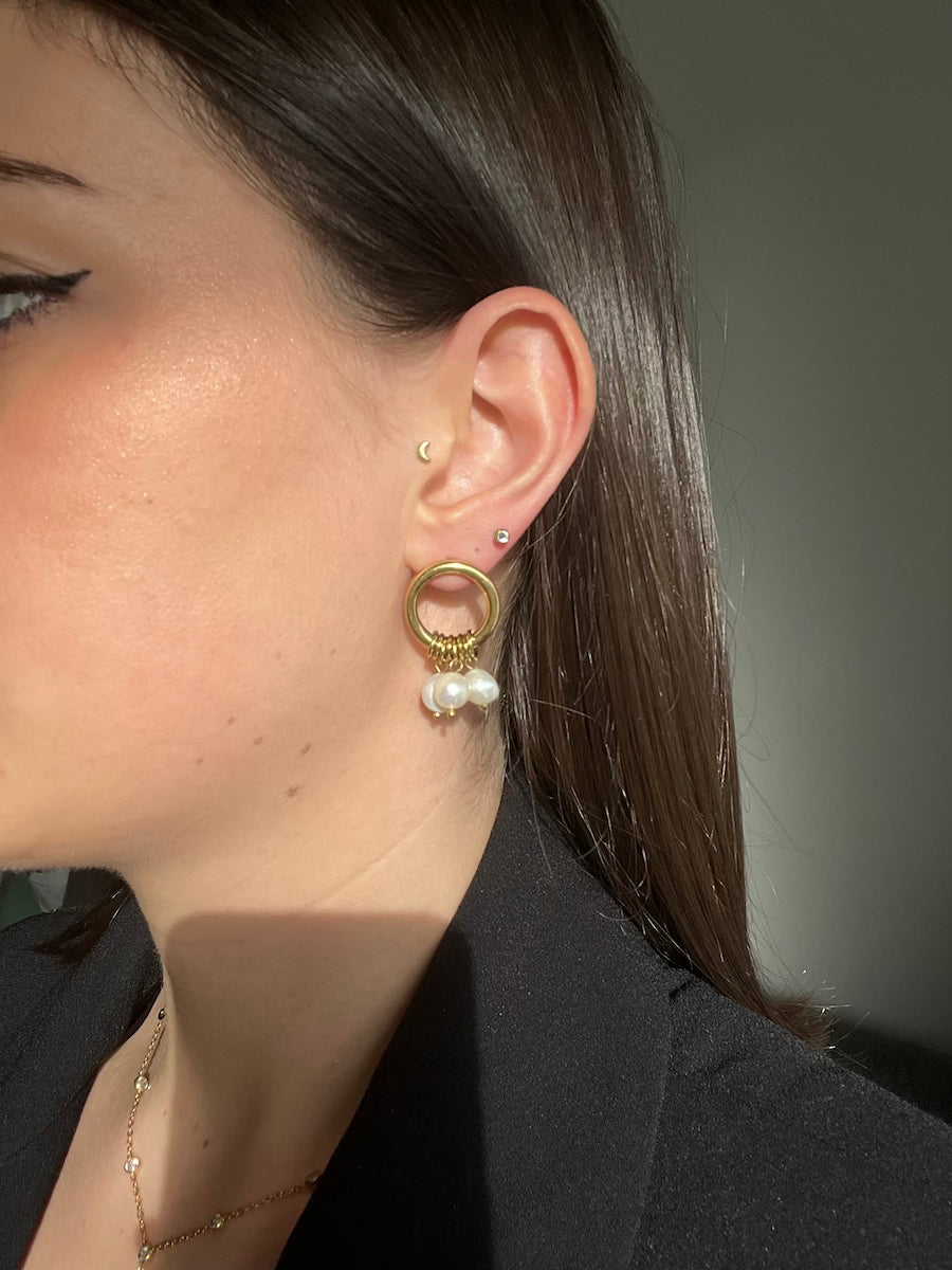- Boucles d'oreilles créoles avec perles d'eau douce