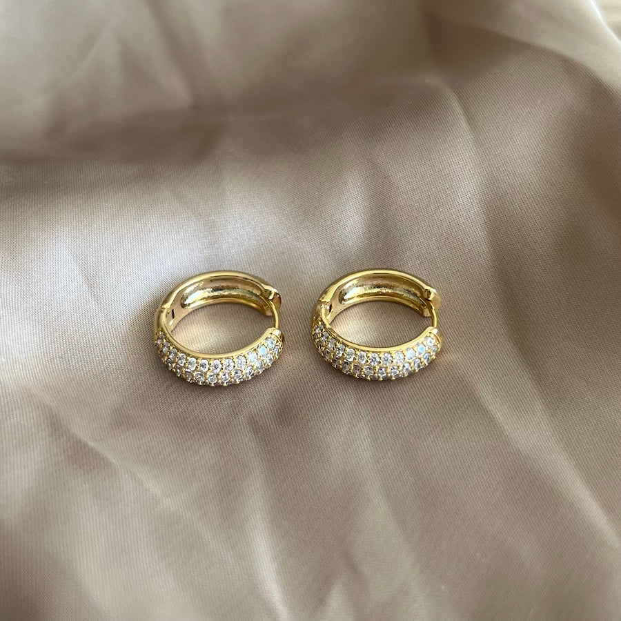 - Créoles bombées en laiton doré à l'or fin serties de strass blancs