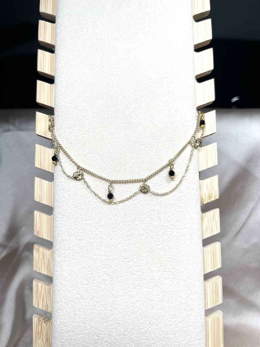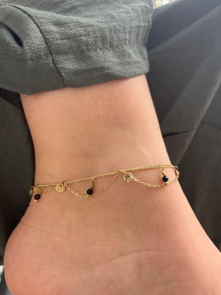 - Chaine de cheville double rangs, détail pampilles et perles noires