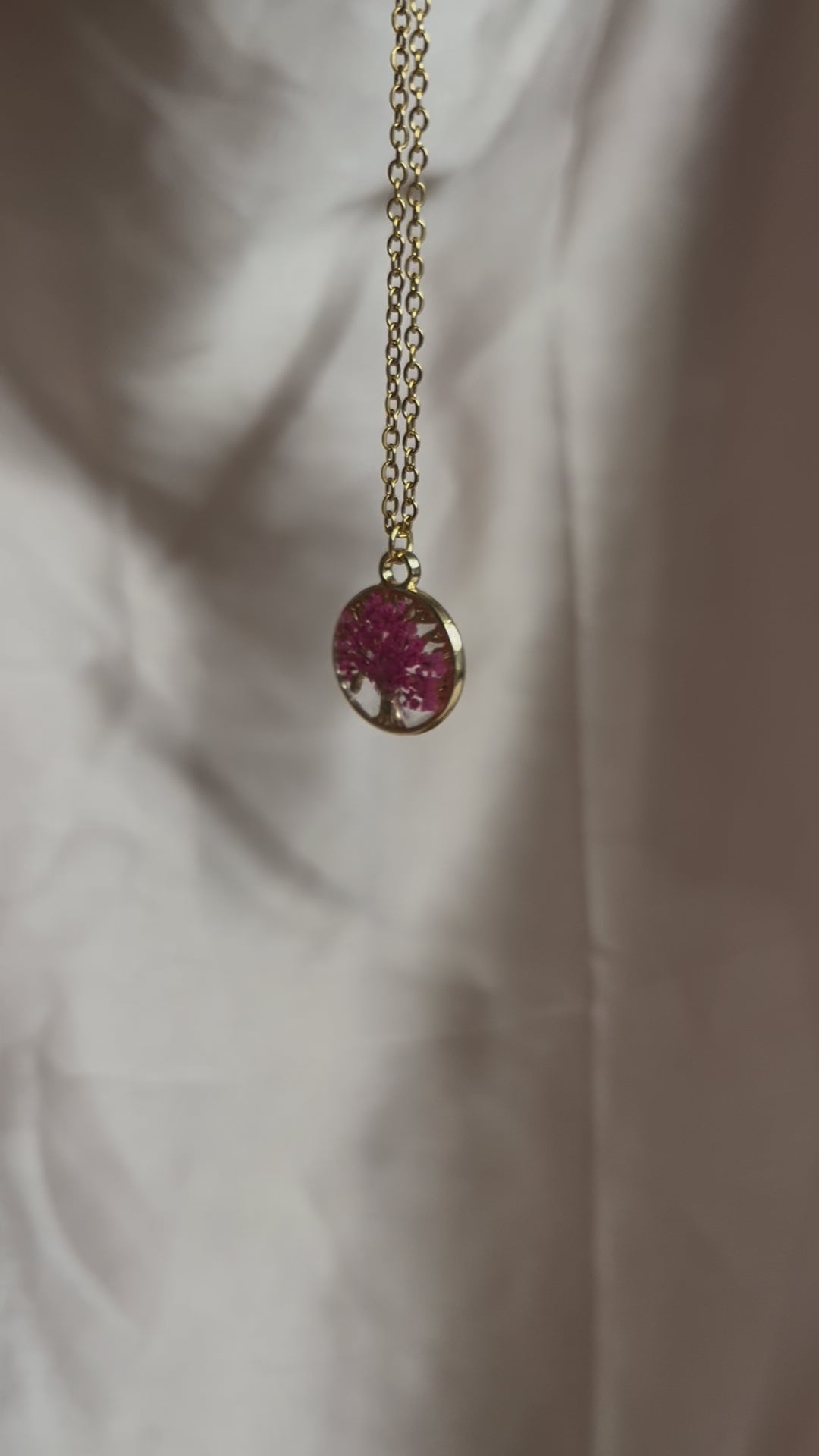 - Collier chaîne fine, pendentif arbre de vie avec des fleurs séchées