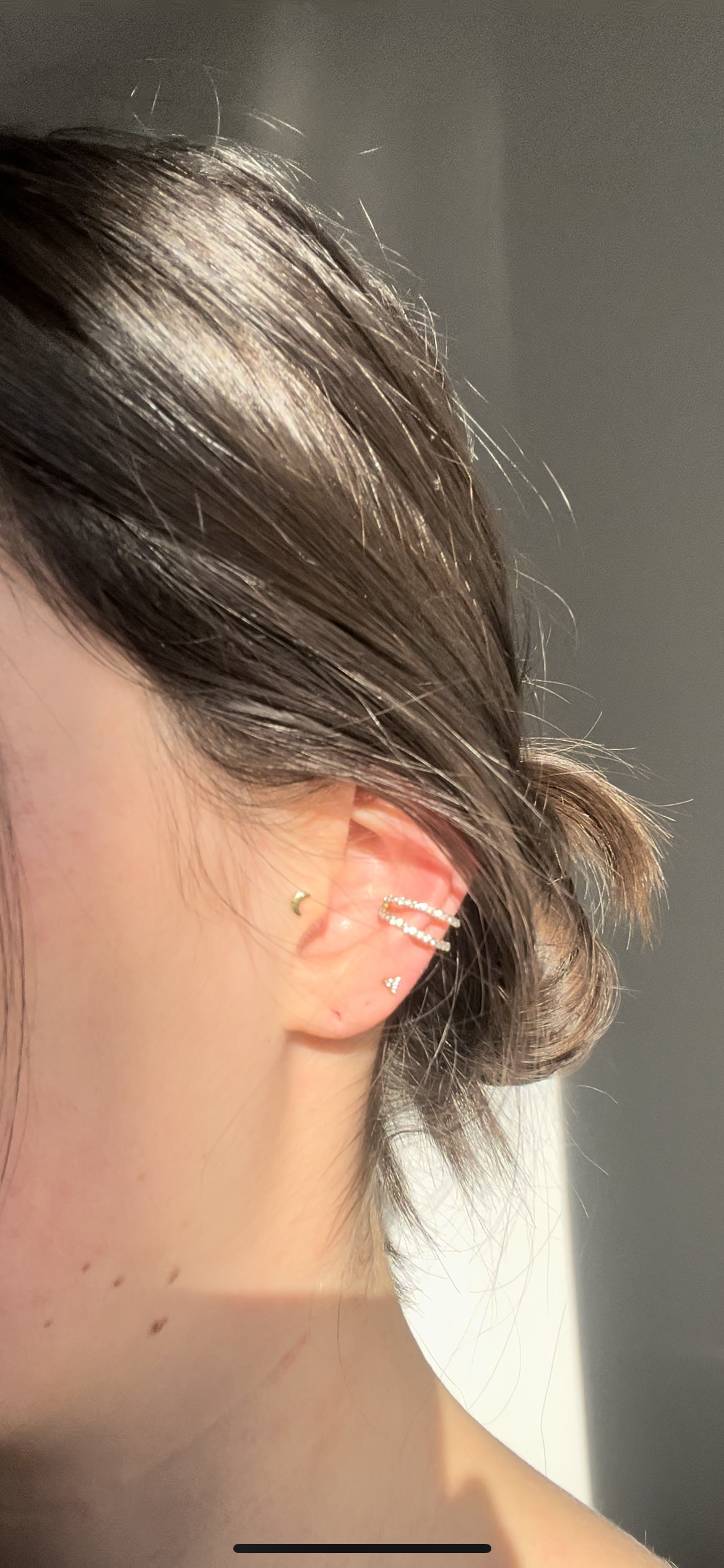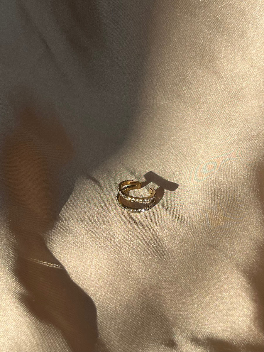 - Bague d'oreille réglable : doublée, dorée et tout en strass