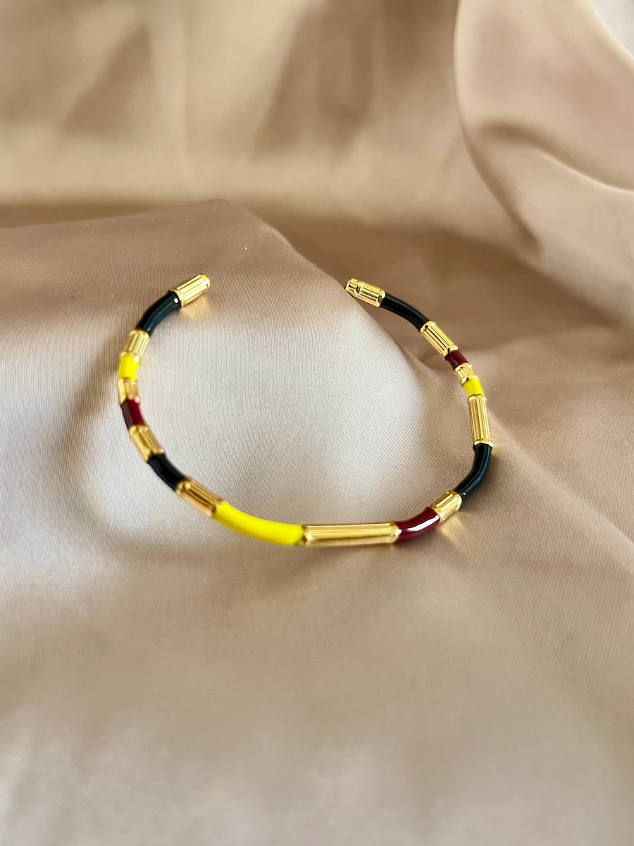 - Jonc fin doré avec détail couleur jaune, marron et noir